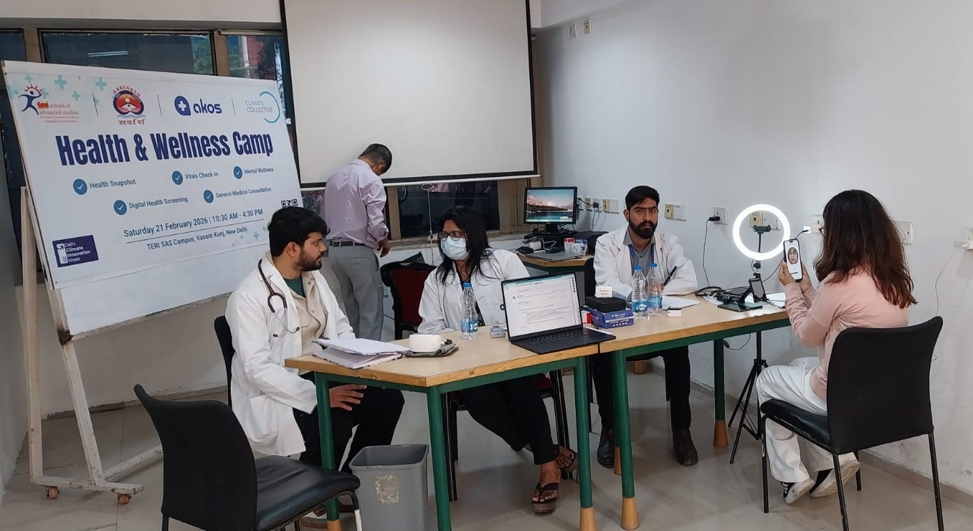 SARVARTH, in collaboartion with TERI SAS and AkosMD India hosted a dedicated Health & Wellness Camp on the Climate Jobs Fair day on 21 February, 2026. Organized on the Climate Jobs Fair day, the camp provided participants with a range of health-focused services, including AI-driven health snapshots, vital signs monitoring, mental wellness support, digital health screenings, and general medical consultations. The initiative encouraged participants and students to assess their essential health information, while engaging in the broader climate innovation activities of the week.