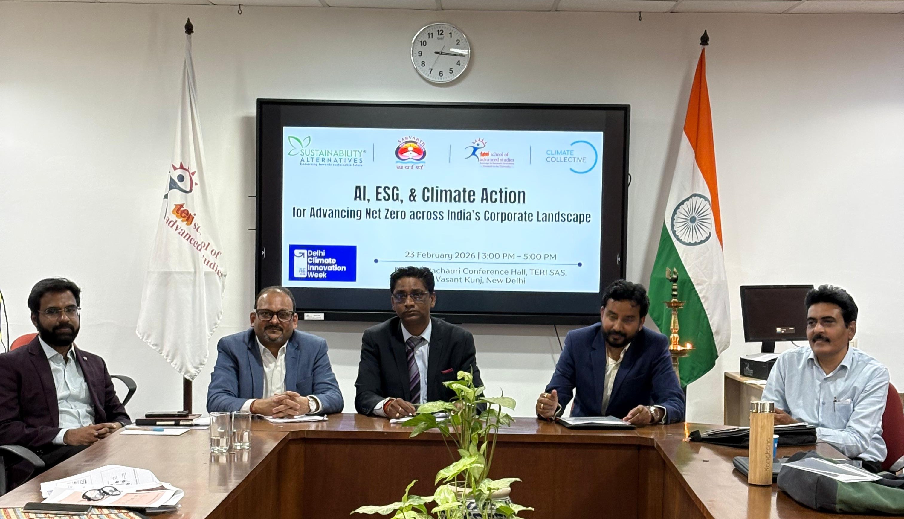 As part of Delhi Climate Innovation Week 2026, Sustainability Alternatives Ltd., SARVARTH, TERI School of Advanced Studies, and Climate Collective, hosted a Roundtable on: “AI, ESG & Climate Action for Advancing Net Zero across India’s Corporate Landscape.” The conversation brought together policy advocates, industry leaders, researchers, academicians, and climate-tech innovators to explore how AI and digital platforms can accelerate ESG integration and Net Zero, without leaving MSMEs behind. The deliberations reflected a rich and substantive cross-sectoral exchange spanning climate governance, carbon market integrity, AI-enabled MRV systems, MSME transition pathways, board-level ESG readiness, public health linkages, and institutional reform priorities. The depth and candour of the discussion significantly strengthened the strategic direction emerging from the roundtable.